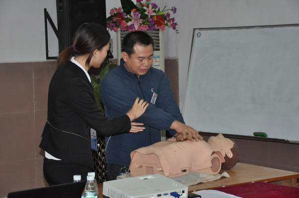 為了充分發(fā)揮本次培訓(xùn)的作用,讓大家可以把理論與實(shí)踐相結(jié)合,并學(xué)以致用。特在現(xiàn)場抽出人員進(jìn)行模擬學(xué)習(xí)心肺復(fù)蘇急救、人工呼吸、穴位按摩等?,F(xiàn)場在活躍、愉快的氣氛中結(jié)束了本次的培訓(xùn)講座。