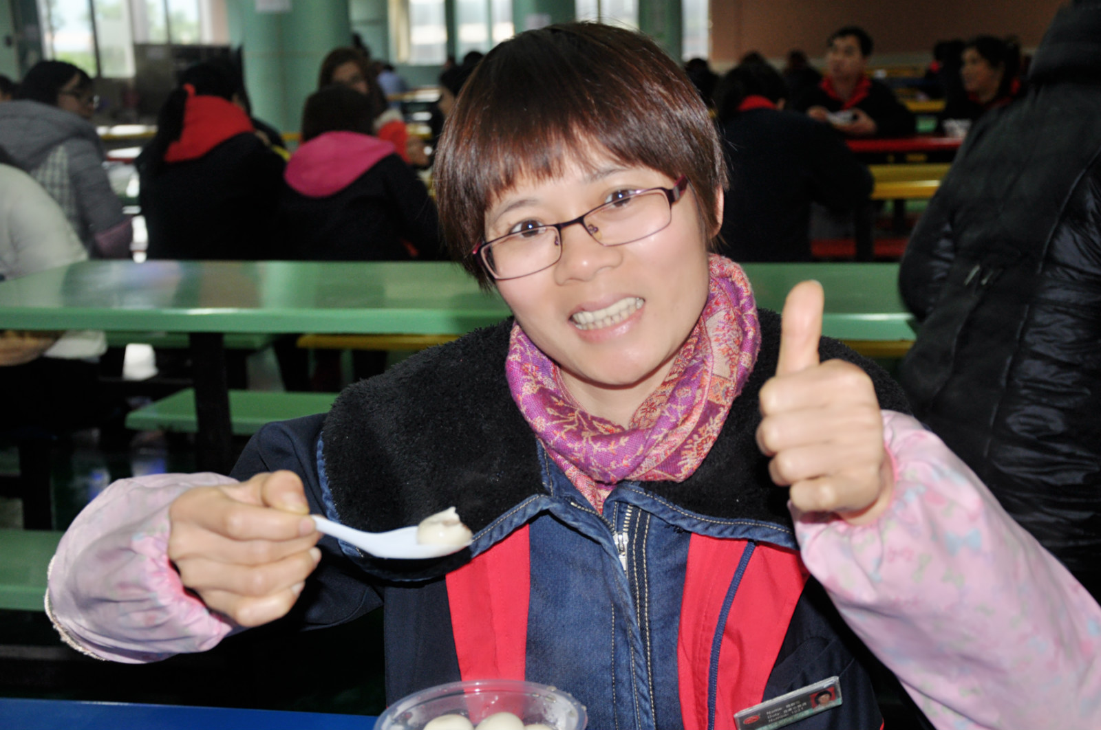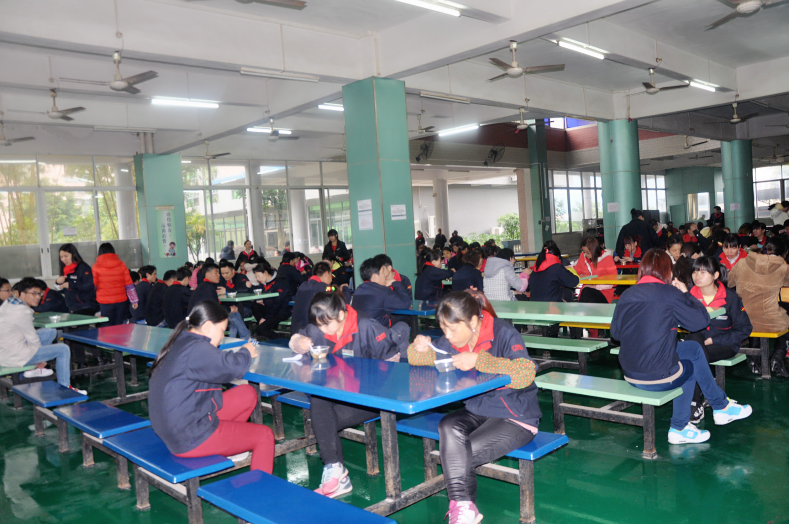 在食堂,排起了兩條長龍,擁擠卻井然有序。