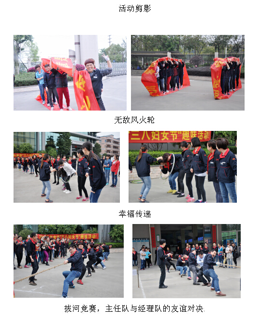 2016年3月8日,我們迎來(lái)了第108個(gè)國(guó)際婦女節(jié)。為了慶祝節(jié)日的到來(lái),廣東金達(dá)為全體女職工舉行“三八婦女節(jié)”趣味活動(dòng),由各部派出的代表參加活動(dòng)比賽。本次活動(dòng)共設(shè)有三個(gè)項(xiàng)目比賽; 幸福傳遞、無(wú)敵風(fēng)火輪、拔河競(jìng)賽。