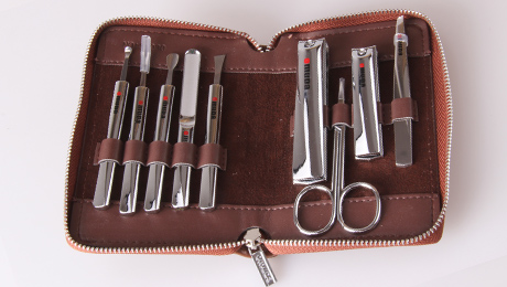 產(chǎn)品規(guī)格:133mm*87mm 產(chǎn)品重量:266g 天地盒規(guī)格:145mm*98mm*28mm 材質(zhì):PU皮+420不銹鋼+碳鋼+鋅合金 配件:大平口指甲鉗、美容剪、小平口指甲鉗、眉夾、指甲銼、平頭推整器、竹殼推整器、死皮刀、耳挖 套裝顏色:啡色