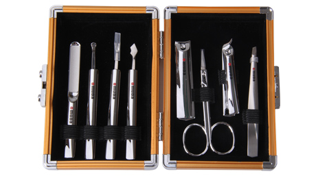配件:平口指甲鉗、美容剪、斜口指甲鉗、眉夾、指甲銼、刮刀、死皮刀、耳挖